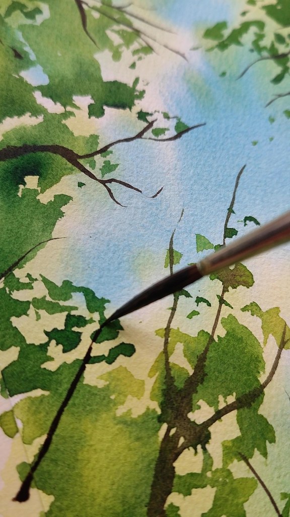 Gogoratu akuarela teknikan argitik ilunera margotzen dela kapaz kapa. Hosto ilunagoak margotu nahi ditugunean Maskuri Berdeari Siena Lur Naturala edo Sepia koloreak gehitu diezazkiokegu.